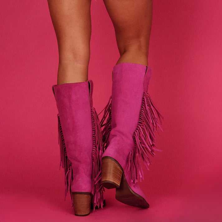Fierce, flirty, and unapologetically bold. The Dingo Twister in Fuchsia isn't just a boot — it’s a full-blown mood. Crafted from lush suede and dripping with fringe, this statement-maker blends wild western energy with runway-worthy style.