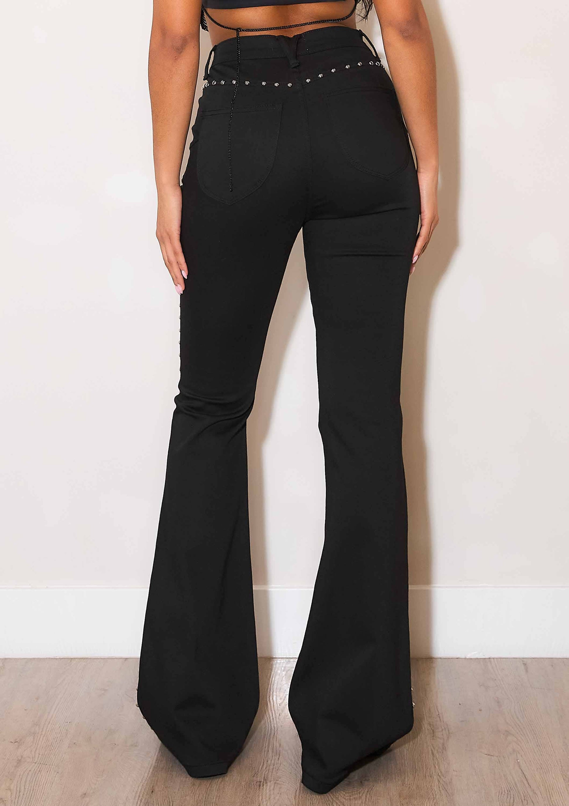 XPT345 High-Rise Flare Jeans With Studs: Black