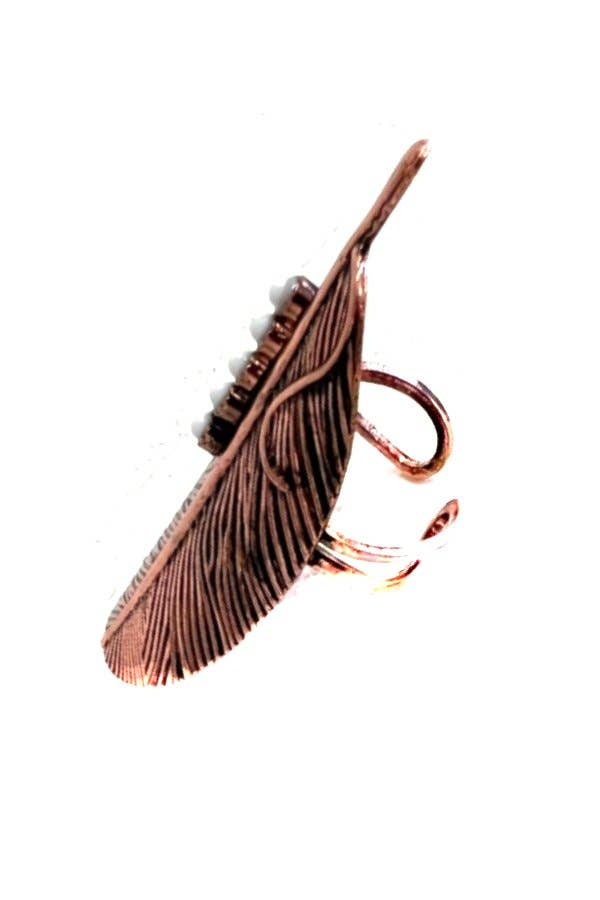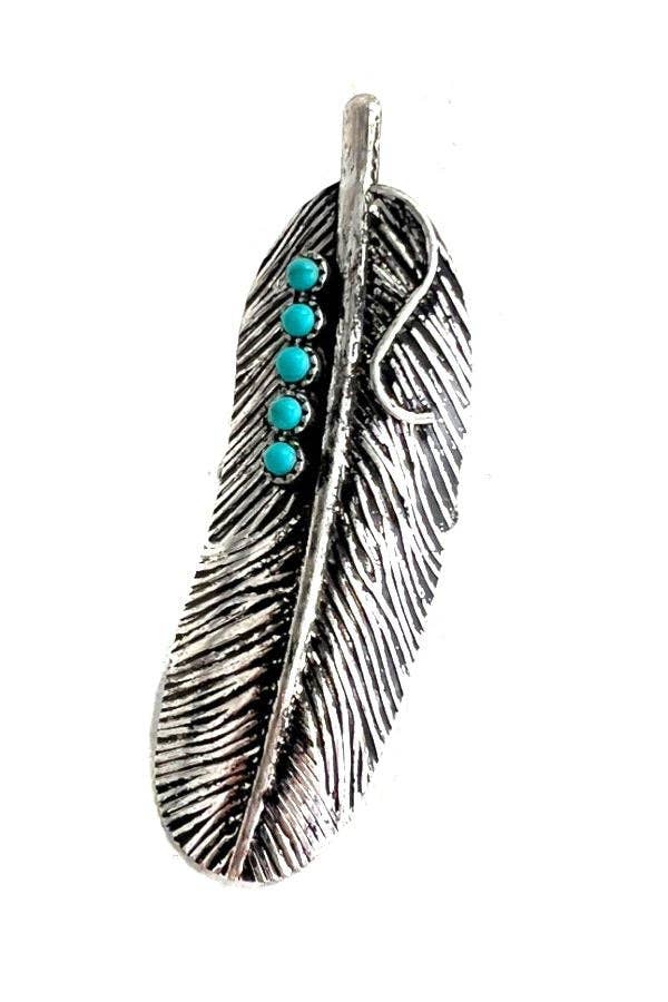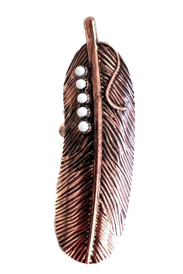 WESTERN FEATHER DESIGN TURQUOISE STONE CUFF RING